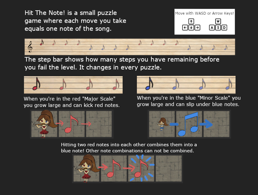 Its a short puzzle game where playing music in the "Major Scale" "scales you up" into giant mode, playing music in the "minor scale" shrinks you down into tiny mode, allowing you to deal with obstacles in different ways.